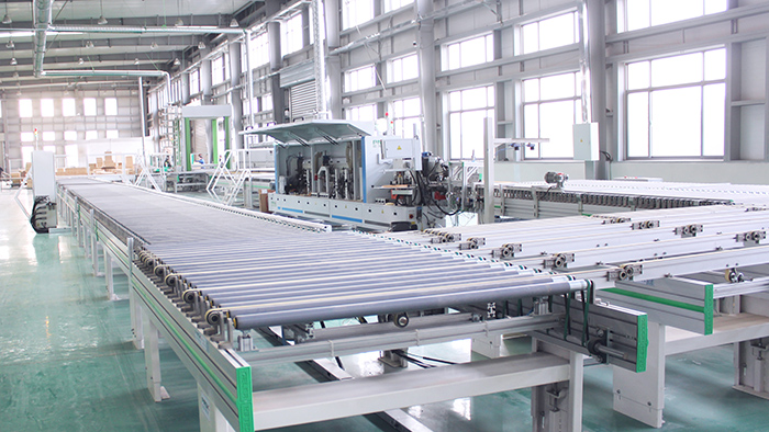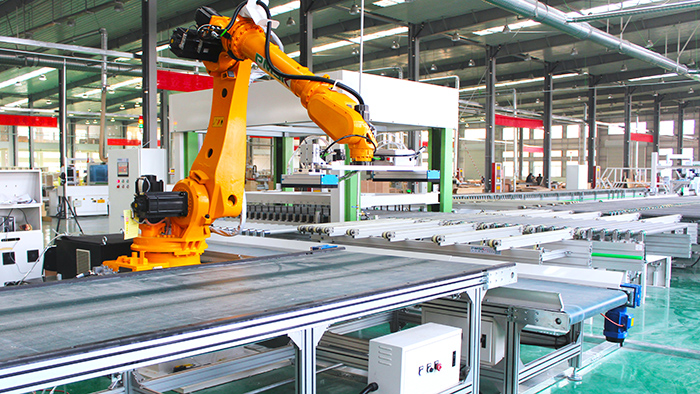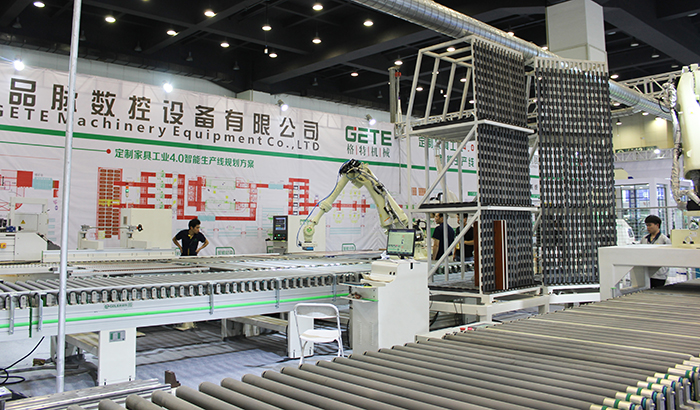 品脈數(shù)控定制家具工業(yè)4.0主要是以無人化工廠為主,打造工業(yè)4.0的生產(chǎn)線,把開料、封邊、鉆孔、分揀、包裝等流程一體化,從而實現(xiàn)無人式的工廠生產(chǎn)模式。整套定制家具工業(yè)4.0硬件部分涵蓋開料設備、多軸搬運機器人、封邊回轉線系統(tǒng)、動力傳輸線、龍門抓料機、六面鉆打孔設備、自動分揀系統(tǒng)等通過總控系統(tǒng)與智能軟件控制實現(xiàn)自動化生產(chǎn)。