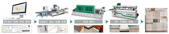 自動(dòng)貼標(biāo)數(shù)控加工中心,由全自動(dòng)上下料木工數(shù)控加工中心以及數(shù)控自動(dòng)貼標(biāo)機(jī)兩臺(tái)設(shè)備組成;通常用于板式家具尤其全屋定制家具自動(dòng)貼標(biāo)自動(dòng)切割加工;后端可搭配數(shù)控側(cè)孔機(jī)或者PTP、數(shù)控五面鉆、六面鉆等設(shè)備;其中搭配數(shù)控五/六面鉆,前端自動(dòng)貼標(biāo)開料加工中心不需翻板加工,適合定制家具高效率規(guī)?;a(chǎn)。