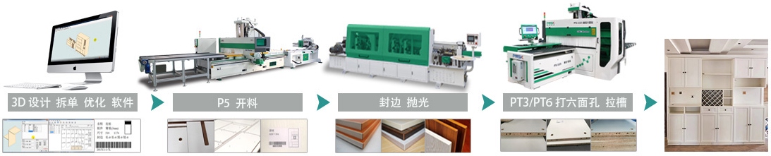 4. 本型大板套裁CNC,可承受高強(qiáng)度滿負(fù)荷運(yùn)行,配套自動貼標(biāo)機(jī)進(jìn)行大板套裁下料,適合組建板式家具智能全自動生產(chǎn)流水線。