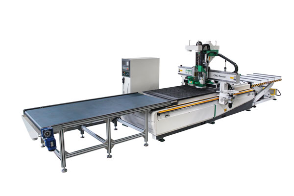 全自動開料機,通常為可以自動上下料的板式下料機,可以對接自動打標(biāo)機,自動拖板上料、氣動裝置自動定位、自動雕刻切割加工,自動推料至輸送平臺;板式數(shù)控開料機有多種款式,常見的有多主軸開料機、自動換刀加工中心、數(shù)控排鉆開料機,從家具廠的發(fā)展應(yīng)用以及后續(xù)的需求來看,全自動換刀開料加工中心將會是使用最多的一種;